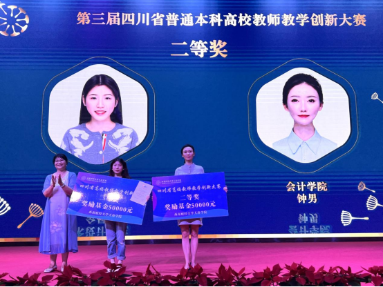 韩秀英为第三届四川省普通本科高校教师教学创新大赛获奖教师颁发荣誉证书