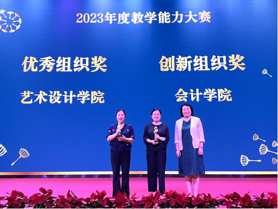 孟虹为2023年度教学能力大赛获优秀组织奖、创新组织奖的教学单位颁发荣誉证书