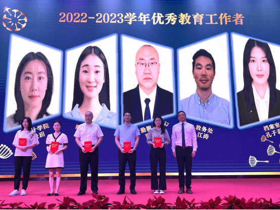 管勇为2022—2023学年优秀教育工作者获得者颁发荣誉证书
