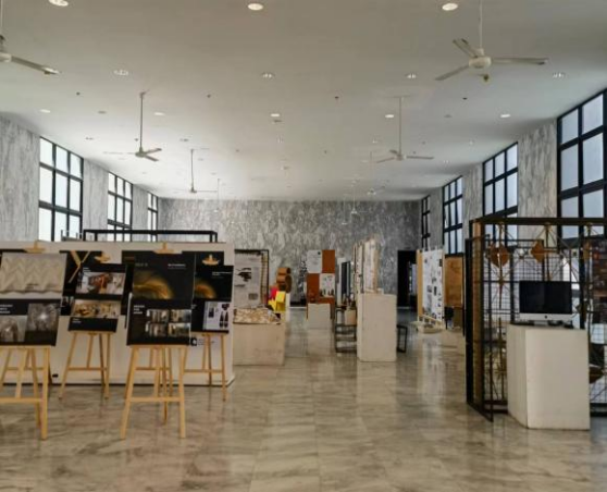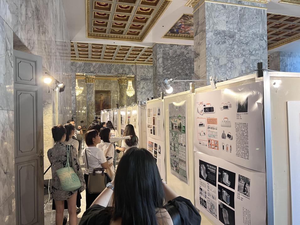 易三仓大学的师生和来宾参观学校师生的设计作品