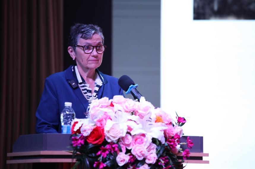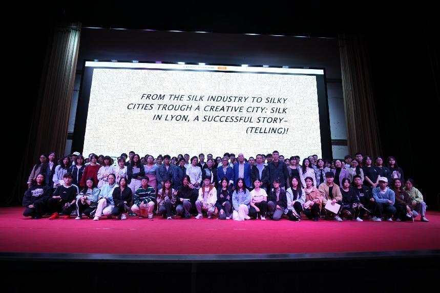 作为天府论坛的特邀嘉宾,当晚巴琪安瑟琪教授在学校成都校区(东区)学术报告厅为学校师生进行主题为《打造文化创意之都讲好中法丝绸故事——法国里昂城市案例分析》的讲座。在讲座中,巴琪安瑟琪深入探讨了法国里昂的丝绸故事,从政治、经济、历史、技术、材料、工业、文化等多个角度出发,详细介绍了里昂丝绸产业的发展历史和里昂城市的变迁。同时,她也强调了随着中国“一带一路”倡议是促进发展和团结的倡议,里昂丝绸文化与中国丝绸文化之间的联系愈发紧密,中法友谊在丝绸这一重要的媒介联系下展现出新的活力。