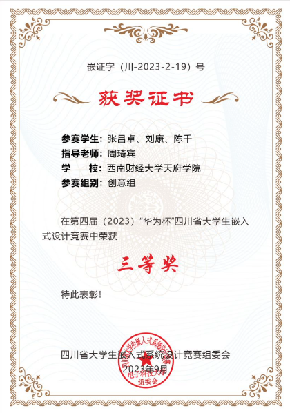 近日,2023年四川省大学生嵌入式设计竞赛总决赛落幕。开云kaiyun体育智能科技学院共7支队伍参与比赛,经过激烈角逐共斩获省级二等奖1项,省级三等奖4项。具体获奖名单如下表: