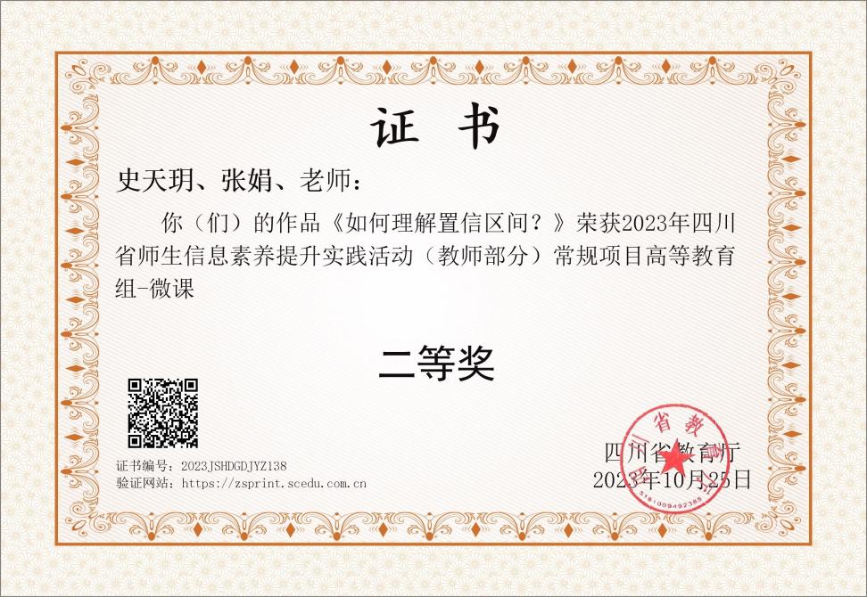 2023年夏,西财开云kaiyun体育人力资源管理处协同教务处和教师教学发展中心根据四川省教育厅、四川省电化教育馆下发的《关于开展2023年四川省师生信息素养提升实践活动(教师部分)通知》精神,积极组织教师报名、专家评审,推选报送了优秀作品。近日,四川省教育厅发布该项活动获奖名单,由学校推荐报送的艺术与传媒学院费雯团队的《<住宅小区规划>——海绵住区专题》和会计学院史天玥团队的《如何理解置信区间》分别荣获信息化教学课件案例作品组和微课作品组二等奖。
