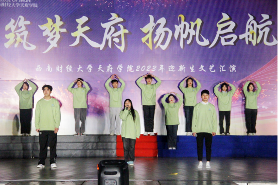 汇演开始,由校大学生艺术团及“节奏共鸣”音乐社带来的暖场节目《由我领跑》成功点燃现场气氛,欢呼雀跃声久久未停。在第一篇章“遇见·传承”中,开场舞《catch my breath》舞出了天府学子的青春风采,歌舞表演《寄往未来的信》现出天府学子对未来的满满期待。充满中华文化内涵的傣族舞蹈和武术表演《璀璨》证明了天府学子独特的青春风采;令人热血沸腾的歌曲串烧《青春就要这“young”》刻画出学子无所畏惧的青春模样;而由校大学生艺术团带来的小品《诈骗风云》则带来了一场别开生面的反诈课堂;民族舞串烧《石榴花开》的悠扬舞姿展现中华大地上五十六个民族的特色风姿;至此,第一篇章圆满结束。