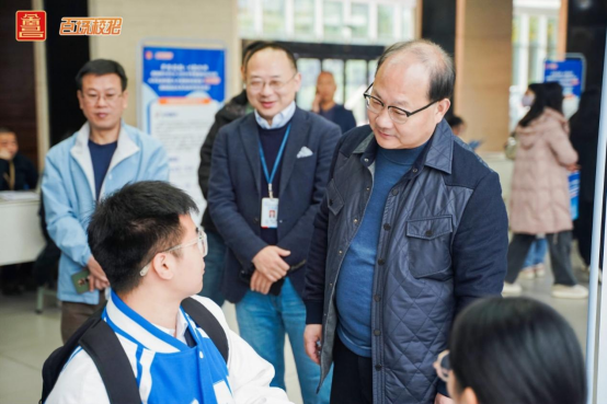 双选会期间,学校副校长姚一永和就业指导中心周淼来到现场,与南昌市西湖区人大常委会党组成员、副主任黄国良、朝阳洲街道党工委书记杨伟杰、西湖区人大农业环资工委主任黄志云、朝阳洲街道党政办主任李欣一行以及参会用人单位进行了亲切交流。在交流中,他们深入了解了招聘需求和现场招聘的实际情况,全面把握了当前就业市场的需求趋势,以更好地为学生提供有针对性的就业帮助和指导。