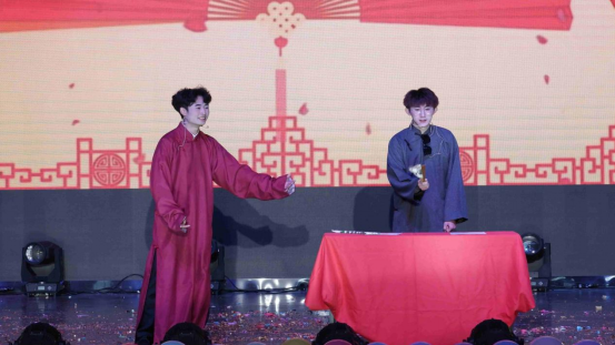 晚会现场灯光璀璨,气氛热烈,不仅有激情四溢的舞蹈,高亢激昂的歌曲,更有振奋人心的朗诵以及幽默风趣的相声,节目精彩纷呈。舞蹈《more》动感十足,展现了同学们的活力与魅力;《歌曲串烧》唱出了天府学子的青春风采,令人热血沸腾;说唱《十五・五十》激励同学们勇敢做自信的自己;走秀《惊鸿》展示了绚丽多彩的中华民族服饰,带领现场观众领略服饰中蕴含的美好寓意;相声《同桌的你》带领大家在笑声中体验平凡有趣的生活小故事;朗诵《我的信仰》展示了新时代青年的追求与担当,不负青春韶华的坚定信心与决心,更是将晚会推向了高潮,赢得现场观众的喝彩与掌声。