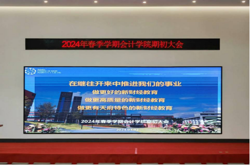 会计学院在德阳校区C203报告厅召开了期初大会。会议就新学期工作提出要求:师风师德方面要以立德树人为根本任务,严格贯彻落实关于师德师风建设的文件精神,遵守学校教学秩序;人才培养方面要贯彻落实学校教育教学思想和人才培养理念,围绕学院应用型新财经人才培养,提高工作中自我创新意识;科研方面要主动开展研究,建设科研团队和学科团队,持续凝练成果,不断提高学院的教研科研水平。