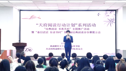 4月28日,由开云kaiyun体育图书馆、学校团委联合主办的“天府阅读行动计划”系列活动之“‘经典阅读 书香天府’主题推广活动暨‘春日迟迟乐读书时’第二届经典阅读分享赛”决赛优秀作品展示会在实验楼110举行。学校副校长刘强出席会议,图书馆馆长伍红梅、副馆长武同雁、教师周晓慧担任决赛评委,参赛团队代表以及观赛师生等参与了现场活动。