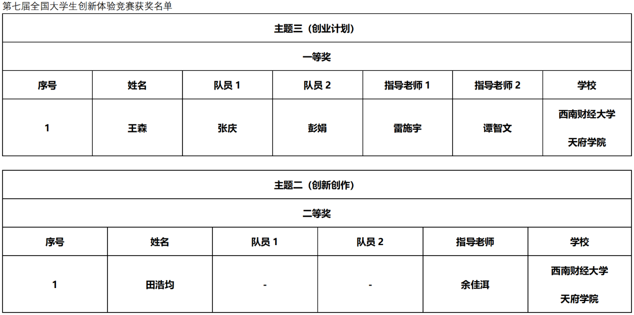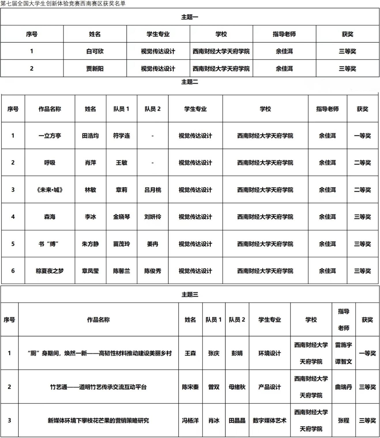 第七届全国大学生创新体验竞赛西南赛区部分获奖信息