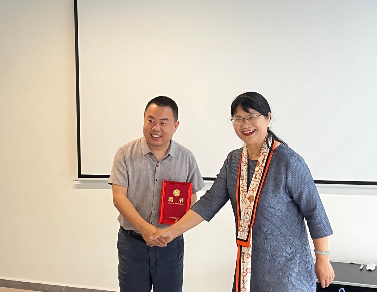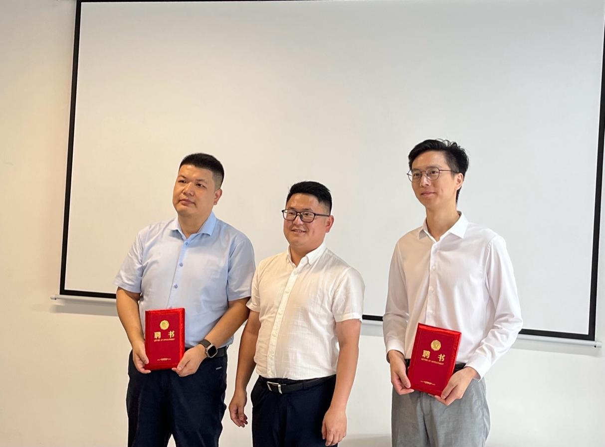 董珀江为工作站站长何俊德、副站长周淼颁发聘书