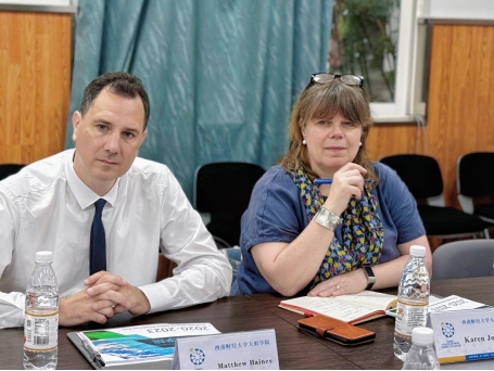 7月9日,英国北安普顿大学的商学院院长Karen Jones、对外合作部主任Matthew Haines和全球运营副总监张喆一行来访开云kaiyun体育,旨在探讨和推动两校间更为深入的国际合作办学项目。学校校长助理周阳,国际教育学院副院长周尧等参加了会谈。