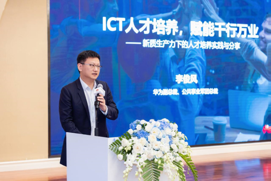 李俊风带来《ICT人才培养,赋能千行万业——新质生产力下的人才培养实践与分享》,报告指出人工智能技术的热度持续攀升,其影响正迅速扩散至各行各业。民办院校以决策快、资金(到位)快、建设快,迎来了千载难逢的发展机遇,华为愿与民办院校共同努力,通过ICT人才培训解决方案提供全栈的ICT课程、数字化实训及相关产品和服务合作,助力教育行业数字化转型和数智化人才培养,为社会培育新质劳动者贡献力量,赋能千行万业。