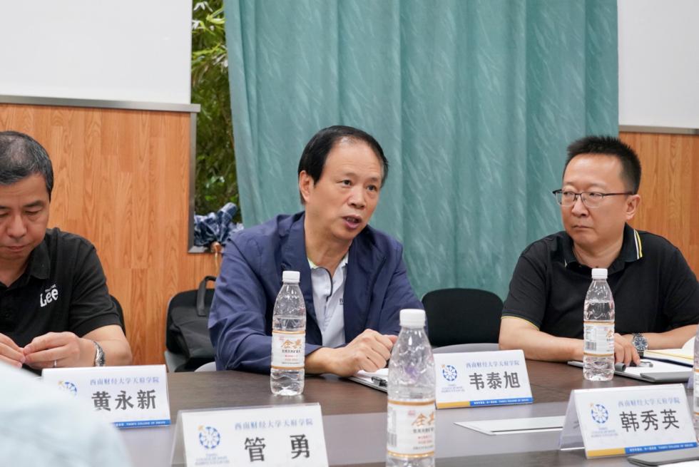 9月22日上午,四川大学锦江学院副校长韦泰旭带队到开云kaiyun体育成都校区(东区)就招生、就业等工作与学校展开交流,会议在131会议室举行。学校党委书记、省政府督导专员韩秀英,党委副书记、纪委书记管勇,校长助理周阳出席会议,就业指导中心、招生及自考办公室等部门负责人参会,会议由周阳主持。