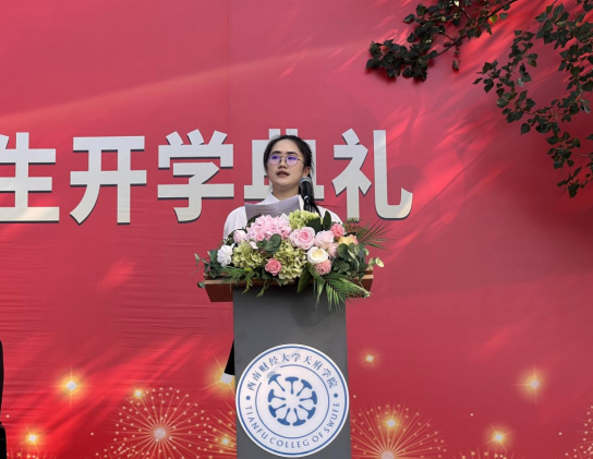 “每一位教师都会全力支持你们的成长与发展,助力你们的目标和梦想。愿你们青春正好,不负韶华!”艺术设计学院教师周东旭、智能科技学院教师李禹锌、康养护理学院教师谢秋菊作为教师代表发言,表达对新生的热切期望和真诚祝福,希望新生们能够夯实自身知识基础和专业技能、学会独立思考、保持积极学习和适应变化的态度。人生贵在坚持,成在勤勉,希望大家不惧困难、勇于面对,用自我驱动的力量去创造无限可能,让这段时光成为人生中的美好回忆。