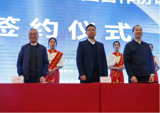 徐保安、张之明、蒲强上台签署德阳市反洗钱宣传教育基地合作协议