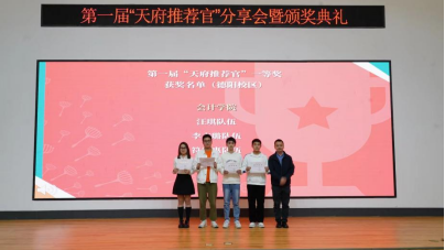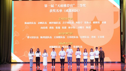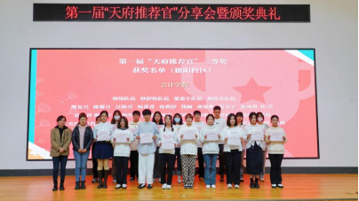 最后,校长助理周阳肯定了同学在第一届“天府推荐官”中付出的努力和收获的成果,同时鼓励大家在校期间积极参与类似的实践活动,在锻炼自己各项能力的同时也能为今后的工作奠定一定的基础,在活动中收获的成果可以成为同学们求职路上的敲门砖。