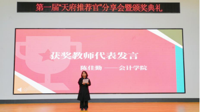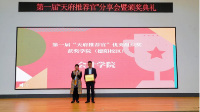 4月6日,第一届“天府推荐官”分享会暨颁奖典礼(成都校区场)在成都校区(东区)学术报告厅顺利举行,绵阳校区场、德阳校区场分别于3月28日、3月30日在两校区举行。学校校长蒲果泉,党委书记、省政府督导专员韩秀英,党委副书记兼纪委书记管勇,副校长张之明、副校长苟兴才,副校长刘强,校长助理周阳等校领导及各二级学院、部分职能部门领导出席活动。
