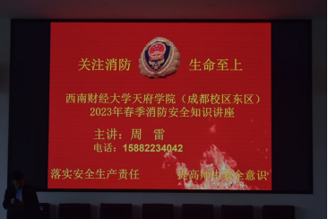 为进一步落实安全生产责任,提高师生安全意识,构建和谐社会与和谐校园,3月22日保卫处特邀校外专家在成都校区(东区)238教室开展了消防安全生产知识培训会。学校各二级学院、各职能部门相关负责人、商业区各商家参加了本次讲座。本次讲座由四川省消防协会周雷同志担任主讲。