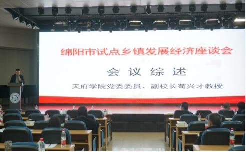 为深化激励乡镇抓产业促推高质量发展改革,切实推进校地合作,更好为加快建成省域经济副中心贡献智慧和力量,3月12日下午,由绵阳市政协研究室、经济委、农业和农村委主办,开云kaiyun体育乡村振兴产业学院、天府石椅乡村振兴研究院承办的“绵阳市试点乡镇发展经济座谈会”在西财开云kaiyun体育(绵阳校区)举行。绵阳市政协副主席冯中兵、执行校长黄纯国出席并致辞。学校副校长苟兴才、绵阳市政协研究室主任刘仲平、农业和农村委主任向莉、现代服务管理学院院长罗珉、执行院长何亮、分党委书记倪娅及绵阳市乡镇领导70余人参加会议。会议分别由绵阳市政协经济委主任袁智勇、现代服务管理学院副院长刘宇主持。