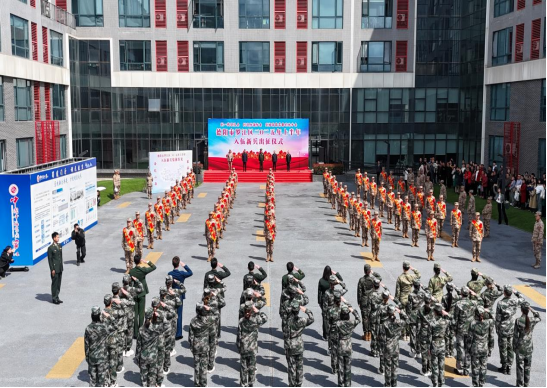 紧接着,英姿飒爽的新兵代表身着崭新戎装,步伐矫健地迈向发言台。他在发言中满怀感恩,代表全体新兵向培育他们的学校和养育他们的家乡致谢,并立下庄重誓言——踏入部队后,必定牢记使命,努力钻研军事技能,用实际行动践行保家卫国的神圣使命,绝不辜负祖国和人民的信任与期望。