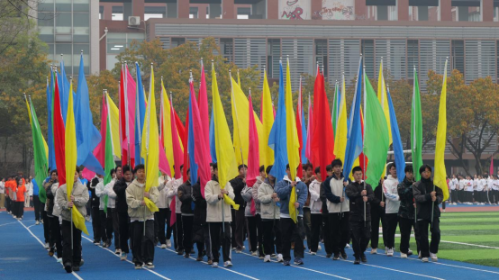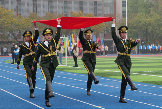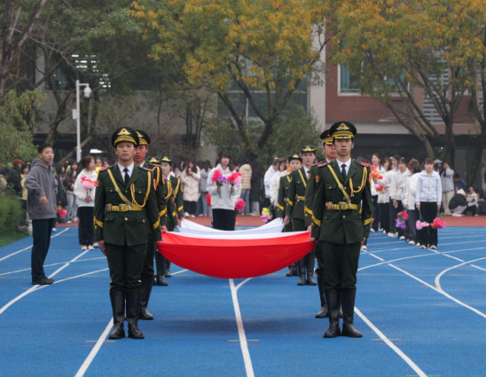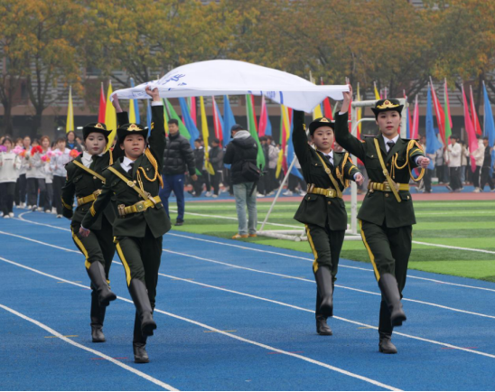 上午8时,开幕式在激昂的国歌声中拉开序幕。国旗护卫队踏着铿锵的节拍,迈着整齐有力的步伐,护送鲜艳的五星红旗入场。在场师生全体肃立,齐唱国歌,爱国情怀与体育精神在此刻交融。