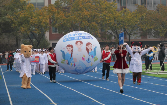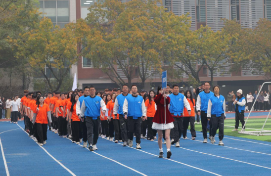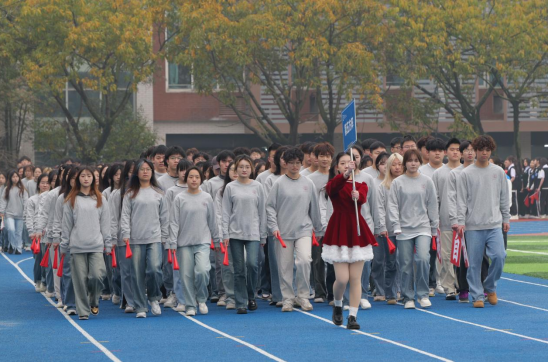 随后,校旗护卫队、鲜花方阵、彩旗方阵、裁判员方阵和各学院代表方阵依次入场。校旗护卫队伴着乐曲声昂首阔步从主席台前走过,每一步都踏出了坚定与自豪。鲜花方阵的队员们手捧鲜花,仿佛带来春天的气息。彩旗方阵踏着节奏,以鲜艳的旗帜为现场增添了一抹亮丽的风景线。裁判员方阵步伐沉稳、身姿挺拔,无声宣告着公平与准则。最后各学院代表方阵入场,每个方阵都精心设计,以饱满的热情和独特的创意,展示着各自学院的风采与特色,赢得阵阵掌声。