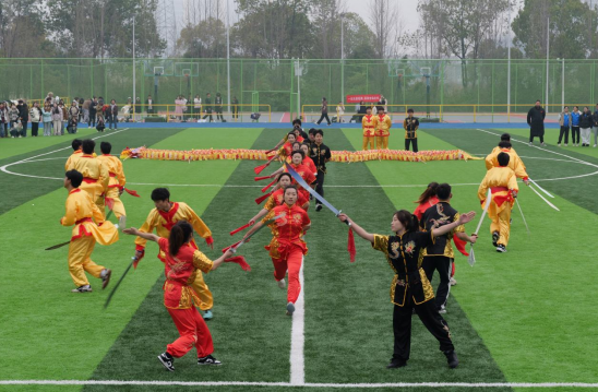 开幕式表演环节将现场气氛推向高潮。《花球啦啦操》表演活力四射,队员们手持彩球,以整齐划一的动作和灿烂的笑容点燃全场;爵士舞串烧节奏动感,舞姿潇洒,展现了当代大学生的蓬勃朝气;武术表演《武魂传奇》刚劲有力,一招一式尽显中华优秀传统文化的魅力,赢得现场阵阵喝彩。