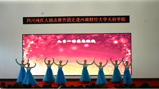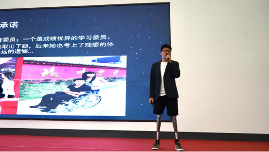 伴随着开场舞《心中有光》本次活动正式开始,蓝珣发表致辞。他对残疾人励志报告团成员代表的到来表示热烈欢迎,指出残疾人事业崇高而伟大,残疾人更是大家共同的兄弟姐妹,希望全体师生能够携手并肩尊重、理解、帮助残疾人,为他们创造更加美好的学习、工作、生活等环境,让每一位残疾人都能在这片土地上感受到社会的关爱,他鼓励着在场每一位观众能从报告团成员的经历中汲取力量,将他们的精神传递到各个角落。