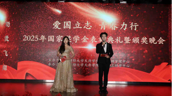 随后,表彰环节正式开始。首先颁发的是资助育人活动奖项,包括资助诚信主题活动和资助政策微视频征集活动获奖作品。而后,国家励志奖学金和国家奖学金的颁奖将现场气氛推向高潮。国家励志奖学金获得者以坚韧不拔的意志在逆境中成长,国家奖学金获得者以德智体美劳全面发展的卓越表现树立标杆。智能金融学院吴晓同学作为国家奖学金获得者代表发言,分享了在学业攻坚与竞赛挑战中的奋斗历程,展现新时代青年的责任担当。