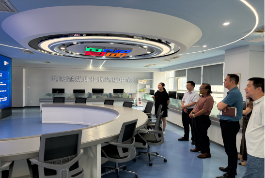 与会双方首先来到绵阳融媒体指挥调度中心,实地参观了解中心先进的技术平台、高效的运营模式,直观感受到了传媒行业前沿动态,为艺术培训与传媒实践融合拓宽了思路。