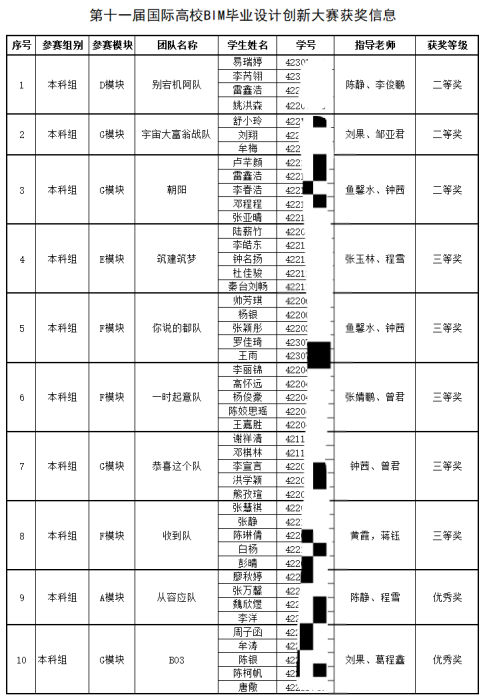 近日,由中国土木工程学会建筑市场与招标投标研究分会、广联达科技股份有限公司主办的第十一届国际高校BIM毕业设计创新大赛落下帷幕,西财开云kaiyun体育工程与材料学院师生在本次大赛中喜获佳绩。以下为本次赛事具体获奖情况: