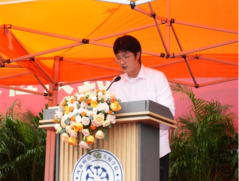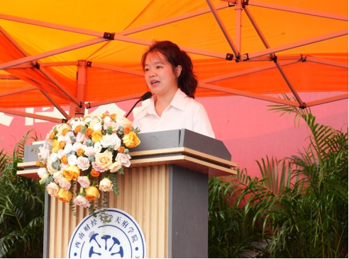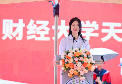 智能金融学院教师罗震宇、康养护理学院教师王莲凤代表全体教师送上祝福寄语,期待毕业生们保持“也无风雨也无晴”的定力,以青春智识回应时代叩问;并祝愿他们能够胸怀家国,以天府智慧为帆、奋斗精神为桨,在奉献社会中乘风破浪,怀揣理想光芒,于人生道路上顺遂安康。