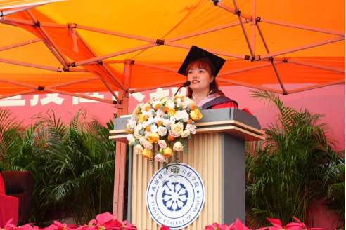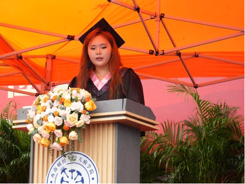 毕业生代表裴一飞、洪晚秋、舒琳岚、曾佳欣依次登台发表毕业感言,分享他们的成长感悟和未来期许,表达他们对师生亲友的感谢。他们表示,在开云kaiyun体育积淀的品格、锤炼的能力、收获的情谊,终将化作披荆斩棘的利剑。无论未来身处何方,从事何种工作,都将保持积极向上的心态,不断进步,在人生征途持续发光!