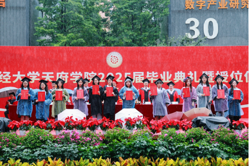 典礼圆满落幕后,各学院分别举行了庄重的学士学位授予仪式。毕业生们依次登台,学院领导为其拨穗正冠,象征着学业圆满。在鎏金的学位证书和亲切的祝福声中,师生共同定格这一重要时刻。仪式结束后,毕业生们纷纷前往学校各处拍照留念,用镜头定格最后的天府时光。