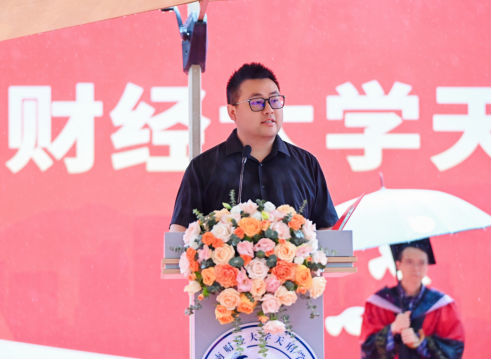 校友代表罗赵和刘强重返母校,分享了他们从校园到职场的成长故事与感想。他们勉励毕业生们把握青春,勇敢追梦,要有持续学习的能力和迎难而上的韧性,不论作何选择,不盲目跟风、也不畏惧改变。同时他们衷心祝愿母校誉满天下,天府学子皆能“仰天大笑出门去”,前程似锦!