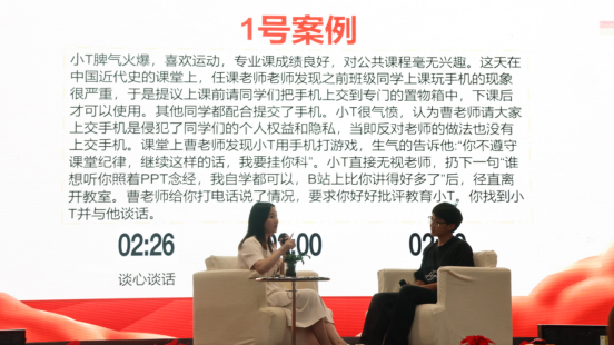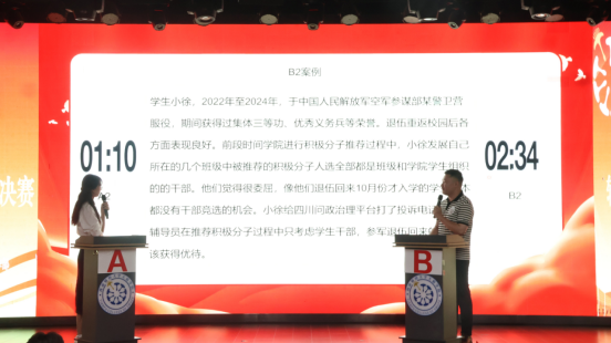 本次决赛设置案例研讨与谈心谈话两大环节,全面考察辅导员的职业素养与育人水平。在案例研讨环节,12 位选手以两两分组形式展开角逐,六组案例聚焦青春恋爱与网络安全、考试作弊、西部计划、心理健康等学生工作中的现实议题。参赛辅导员通过“一问一答”的形式,不仅深入剖析案例背后的思想困惑与实际困难,更注重从价值观引导、成长支持等层面提出系统性解决方案,充分展现了育人工作的多元维度与深层关怀。