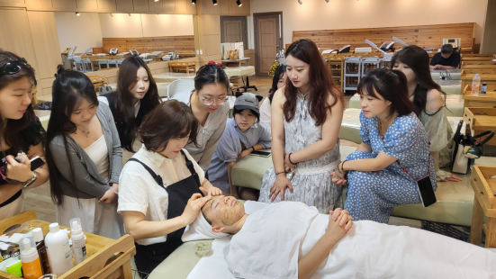 研学期间,研学团一行受到韩国湖南大学的热烈欢迎,并开展多场学术研讨及美学专题课程。在湖南大学美容系专业教授的亲身指导和示范下,大家系统学习了韩式底妆技巧、色彩搭配原理和科学护肤流程,亲身体验了韩国精致的美容文化。课程不仅传授了实用的形象管理技能,更让大家领悟到韩国美业对细节的极致追求与创新精神。