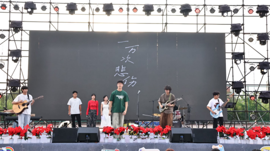 民谣《阿依莫》凭借独特的旋律与动人的嗓音,再次将现场氛围推向高潮,观众的尖叫声、掌声此起彼伏。当《像你这样的朋友》响起轻快的旋律,搭配上活泼的舞蹈,瞬间勾起人们对与朋友相处时趣事的回忆。最令人惊喜的当属老师献唱环节——台上放声歌唱的老师们,与他们以往严谨专业的模样形成强烈对比。在《青春如歌》的和声中,夹杂着学生们“老师好帅”的尖叫,引发全场集体欢呼,让师生情谊在舞台上下尽情绽放。