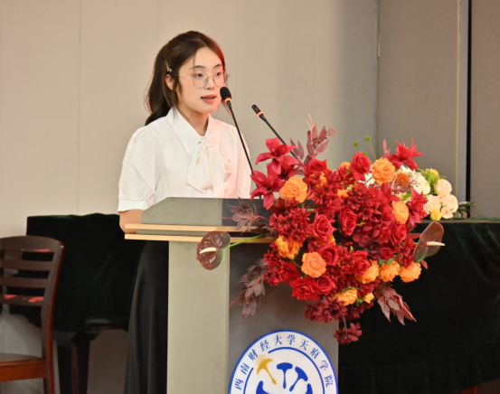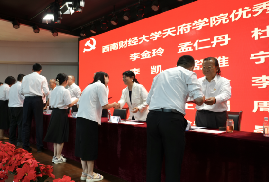 获奖代表交流发言环节,四川省高校优秀党务工作者常荣同志,优秀共产党员代表、会计学院周慧灵同志,优秀党务工作者代表、工程与材料学院罗美清同志,先进基层党组织代表、康养护理学院第九党支部贾林同志和“青年党员说”研学活动代表、优秀党支部书记代表李俊鹏同志先后上台发言。代表们结合工作实际,回顾了各自岗位上的奋斗故事,讲述了在教学科研一线攻坚克难的生动实践、创新党建工作方法的典型经验、深入一线服务师生群众的具体举措。他们由衷感谢党组织的培养信任和同志们的支持帮助,一致表示将珍惜荣誉、再接再厉。