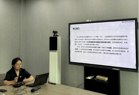 刘勤博就学校社科工作开展情况进行了全面汇报。汇报内容围绕科研管理制度建设、科研平台建设、科研项目建设以及科研成果产出四个核心维度展开,呈现了学校社科工作的整体布局与具体进展。同时,四川现代流通经济研究中心、四川天府老龄产业发展研究中心也分别就自身工作开展情况作了详细汇报。