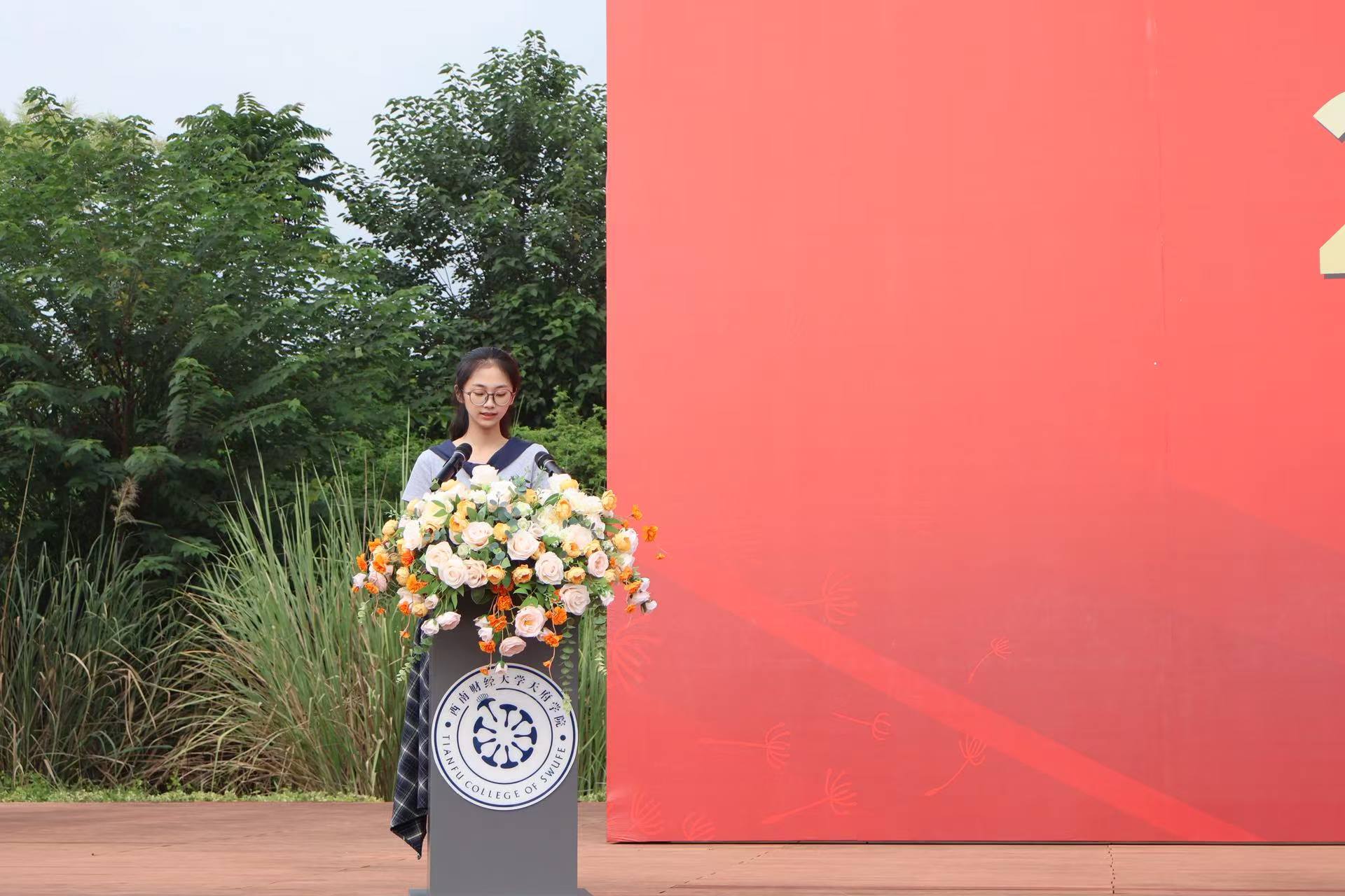 国际教育学院李林娟、艺术与传媒学院唐黎媛、会计学院唐波力·拉扎提和体育学院杨丁爽作为2025级新生代表,在发言中分享了他们对即将开启的大学生活的展望与憧憬,表示期待着在这段青春旅程中实现成长、探索与蜕变,在校园里广泛汲取知识、不断拓宽认知边界,结识志同道合的伙伴,并通过持续探索,最终找到属于自己的方向与人生价值。