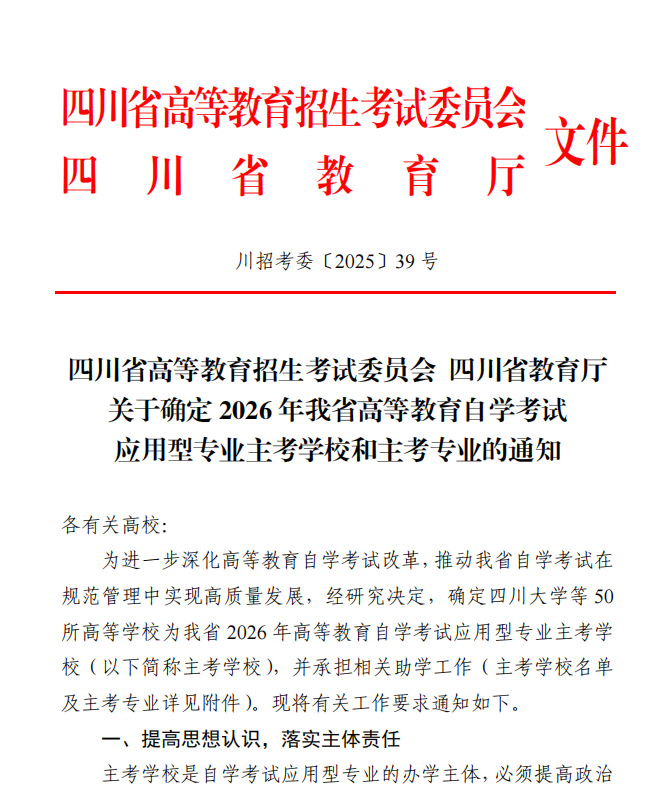 9月16日,四川省高等教育招生考试委员会与四川省教育厅正式批准开云kaiyun体育增设高等教育自学考试应用型专业,包括专升本汉语言文学,以及专科数字媒体艺术和学前教育。