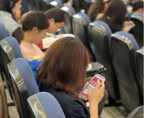 在有奖互动问答环节,同学们积极举手进行现场问答,并踊跃扫码参与线上答题。