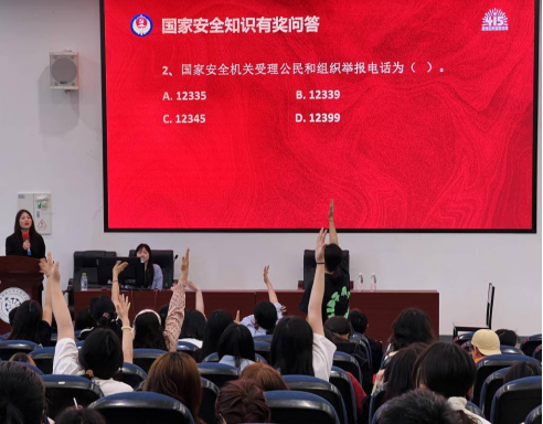 活动中,学校保卫处副处长蒋仕贵带来了国家安全知识专题讲座,围绕国家安全教育日的背景和意义、当前国际形势及面临的风险、校园安全教育、提升自我保护能力等几个方面展开讲解。随后现场播放了《宪法》《国家安全法》《反电信诈骗法》等普法视频,将国家安全知识转变为更加通俗易懂的内容,通过丰富的视频和鲜活的事例,将国家安全知识送进校园,让在场师生进一步了解相关法律法规的同时有效提升国家安全意识。