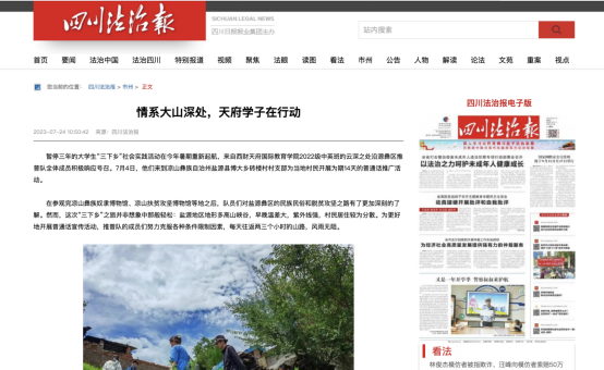 暂停三年的大学生“三下乡”社会实践活动在今年暑期重新起航,来自西财天府国际教育学院2022级中英班的云深之处沿源彝区推普队全体成员积极响应号召。7月4日,他们来到凉山彝族自治州盐源县博大乡砖楼村村支部为当地村民开展为期14天的普通话推广活动。