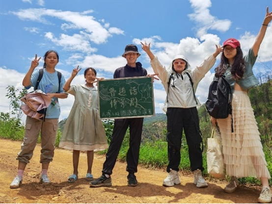 在参观完凉山彝族奴隶博物馆、凉山扶贫攻坚博物馆等地之后,队员们对盐源彝区的民族民俗和脱贫攻坚之路有了更加深刻的了解。然而,这次“三下乡”之旅并非想象中那般轻松:盐源地区地形多高山峡谷,早晚温差大,紫外线强,村民居住较为分散。为更好地开展普通话宣传活动,推普队的成员们努力克服各种条件限制因素,每天往返两三个小时的山路,风雨无阻。
