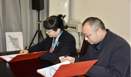 韩秀英和左彩龙分别代表学校和李白纪念馆签订了共建协议,并为共建基地揭牌。蒲果毅向李白纪念馆展示了即将捐赠的李白雕像的设计图纸。