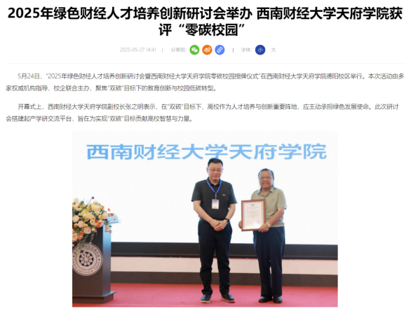 5月24日,“2025年绿色财经人才培养创新研讨会暨开云kaiyun体育零碳校园授牌仪式”在开云kaiyun体育德阳校区举行。本次活动由多家权威机构指导,校企联合主办,聚焦“双碳”目标下的教育创新与校园低碳转型。