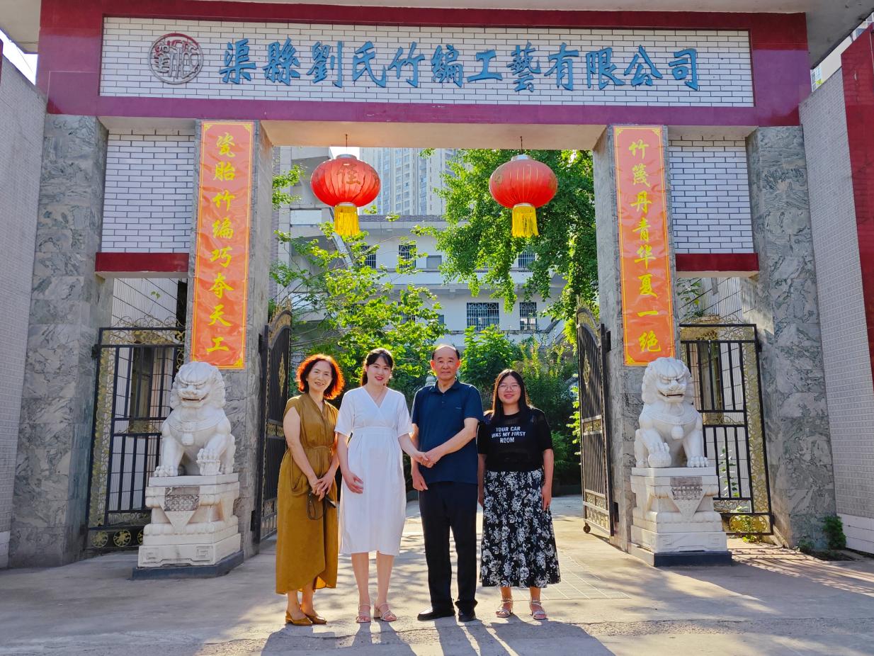 实践队与刘嘉峰在渠县刘氏竹编工艺有限公司门口合影