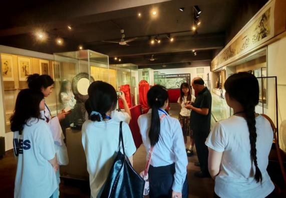 当双面竹编屏风在转动中呈现截然不同的画面时,同学们看到了传统工艺的多维智慧。这种随视角变化的艺术表达,启发人们思考:在复杂环境中,单一维度的判断是否足够?《夜樂图》在不同光线下的变幻,更是生动诠释了“敏思”的内涵——保持开放的思维,才能看见事物更丰富的层次。同学们认真记录“分丝”“先染后编”等工艺细节,也在竹香中触摸到了职业的温度。
